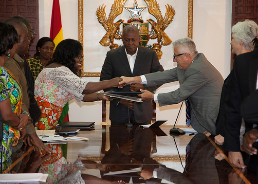 Nana Oye Lithur, the Minister of Gender, Children and Social Protection, signed for Ghana while the out-going US Ambassador to Ghana, Mr Gene Cretz, signed for the USA. The ceremony was attended by President John Mahama.