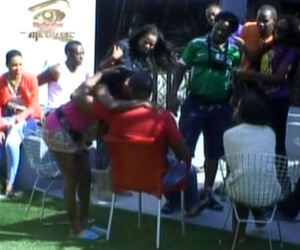 A casual game of spin the bottle in the garden resulted in Ghana’s Selly reaching over to Angola’s Biguesas for a passionate kiss much to the amusement and applause of her fellow housemates.