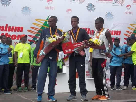Ethiopian Tereta Debela Delesa beat Kenyan George Waiyaki Njoroge and the 2011 Accra Milo Marathon champion William Akuka in the male category, winning the ultimate prize of Peugeot car whilst the second and third received USD 3,500 and 1,500 USD respectively.